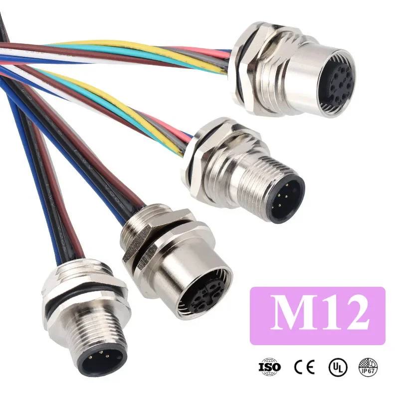 Waterproof M12 Panel Socket with 30CM Wire IP67 2 3 4 5 6 7 8 12 17 Pin Cable Connector Male Female Panel Front/Rear Socket  Read more