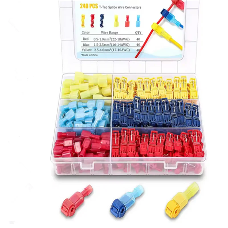 120/240PCS T Tap Wire Terminals Self-Stripping Quick Connecting Splice Electrical Wire Connectors Insulated Male