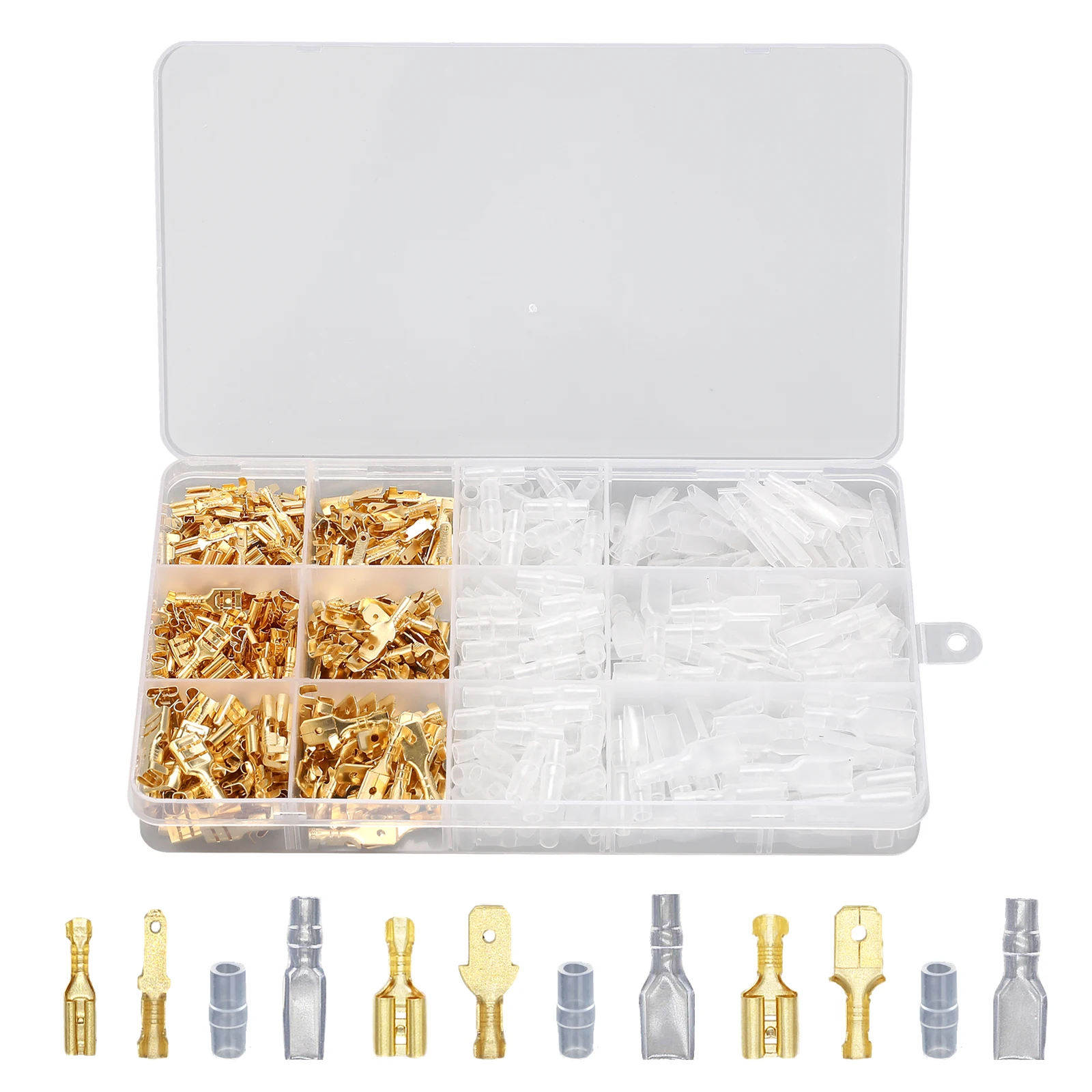 2.8/4.8/6.3mm Wire Crimp Terminals Kit Copper Male Female Wire Spade Connectors with Insulated Sleeve Electrical Conector Box