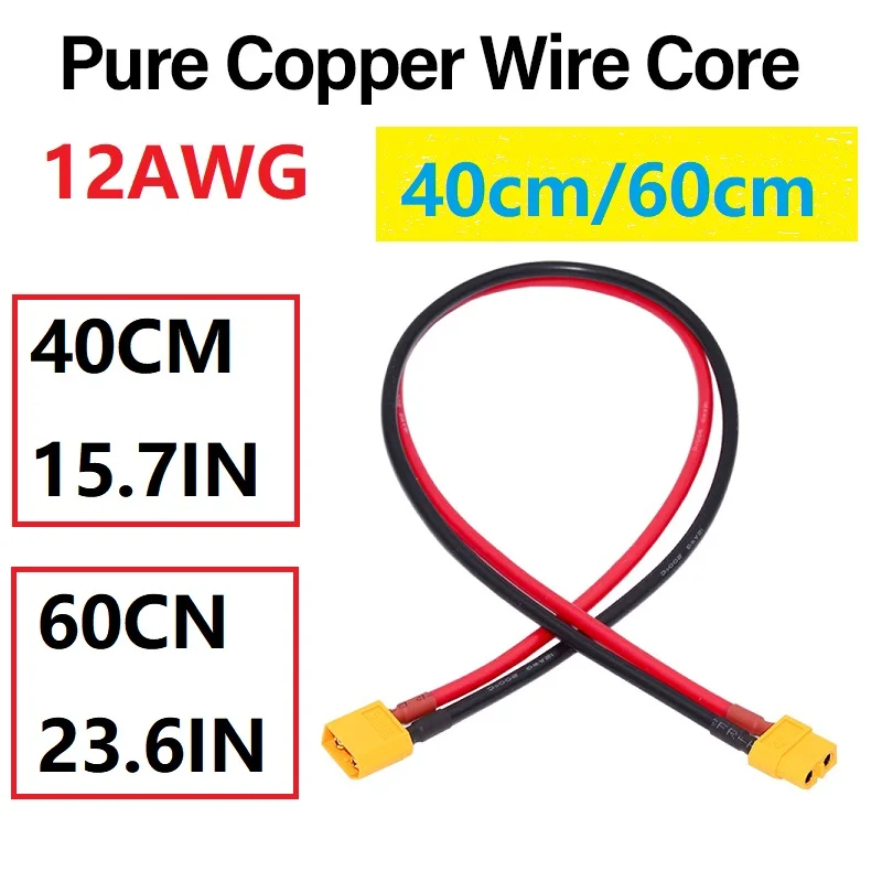 XT60 12AWG Parallel Battery Connector XT60Male/Female Cable Dual Extension 40CM/60CM Silicone Wire for RC Battery Motor  Read more