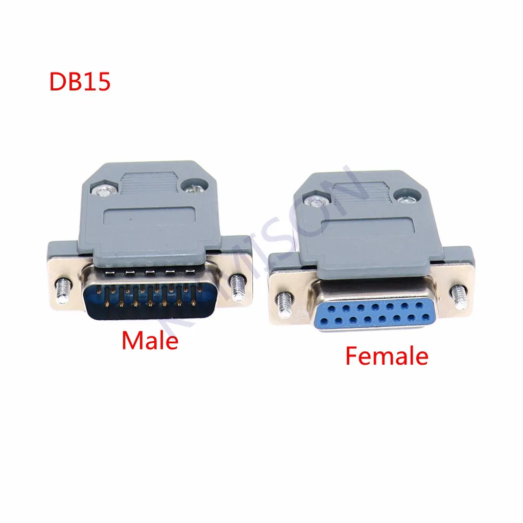 10PCS RS232 DB15 15 Pin Female/Male 2Rows Solder Type Plug D-SUB Male Plug Socket Connector Plastic Assemble Shell Cover