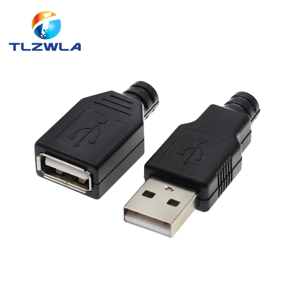 10PCS Type A Male Female USB 4 Pin Plug Socket Connector With Black Plastic Cover Type-A DIY Kits