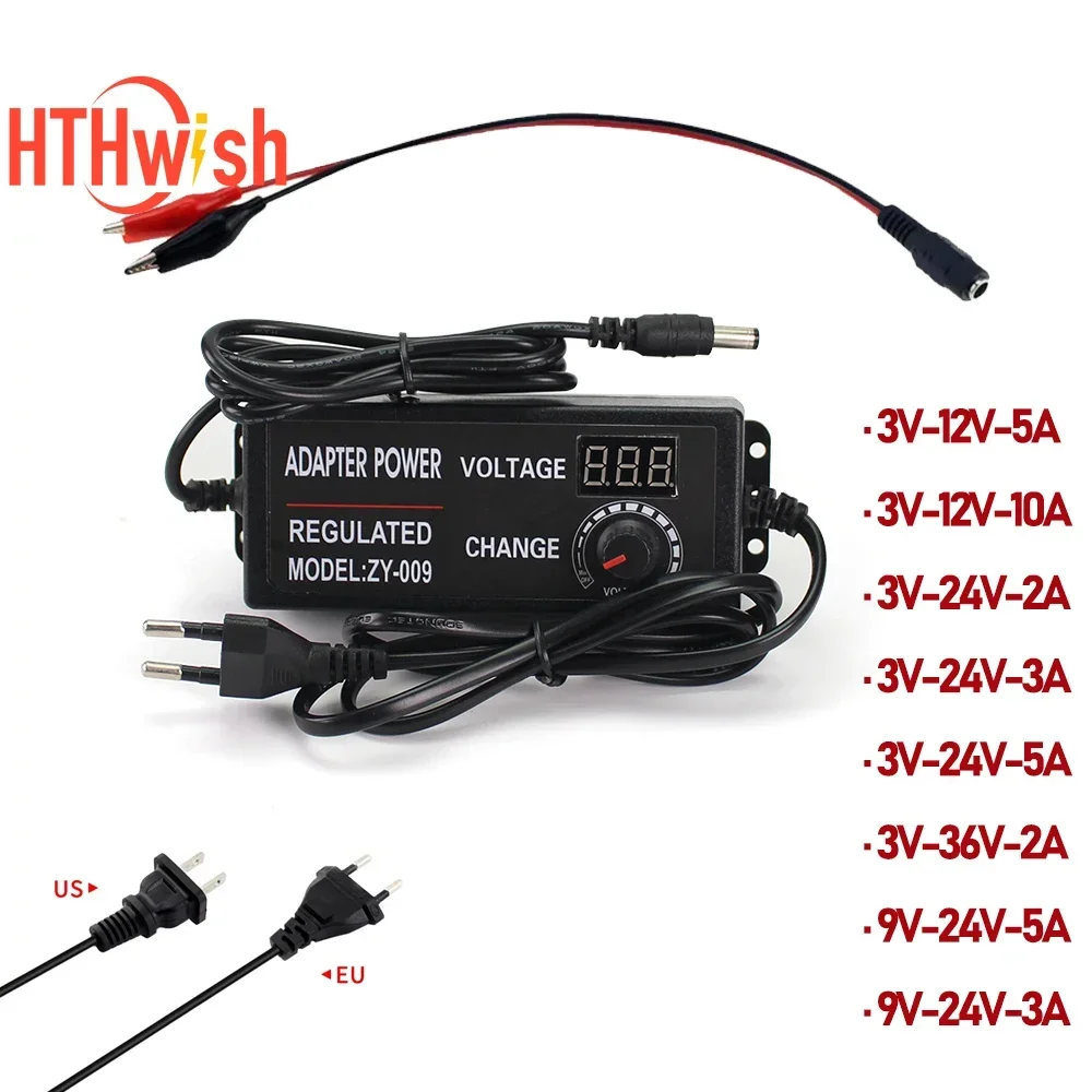 AC TO DC Adjustable Power Supply 3V 5V 12V 24V 36V 2A 3A 5A 10A with Female Alligator Clip Connector LED Power Adapter
