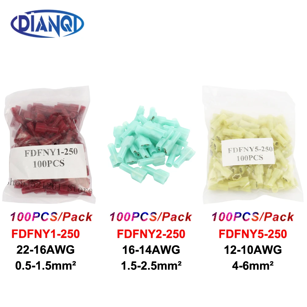 FDFNY1.25-250 FDFNY1-250 NYLON brass Female Insulated Spade joint Cable Wire Connector 100PCS 0.5-1.5mm2 22-16AWG FDFNY