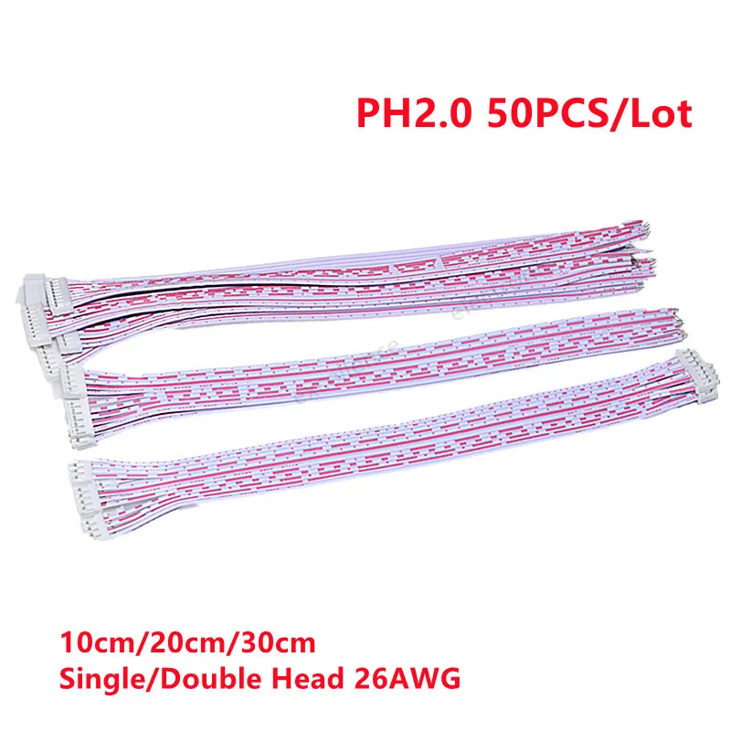 50PCS/Lot PH2.0 Female Connector Terminal Cable 10cm 20cm 30cm 2.0 JST Wire 2p 3p 4p 5p 6p 7p 8p 9p 10p11p12p Single/Double Head