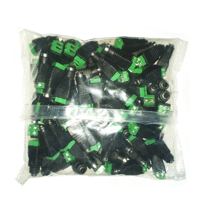 100Pcs DC Power Female Jack Connector Plugs For LED Light Strip Switching Power Adapter