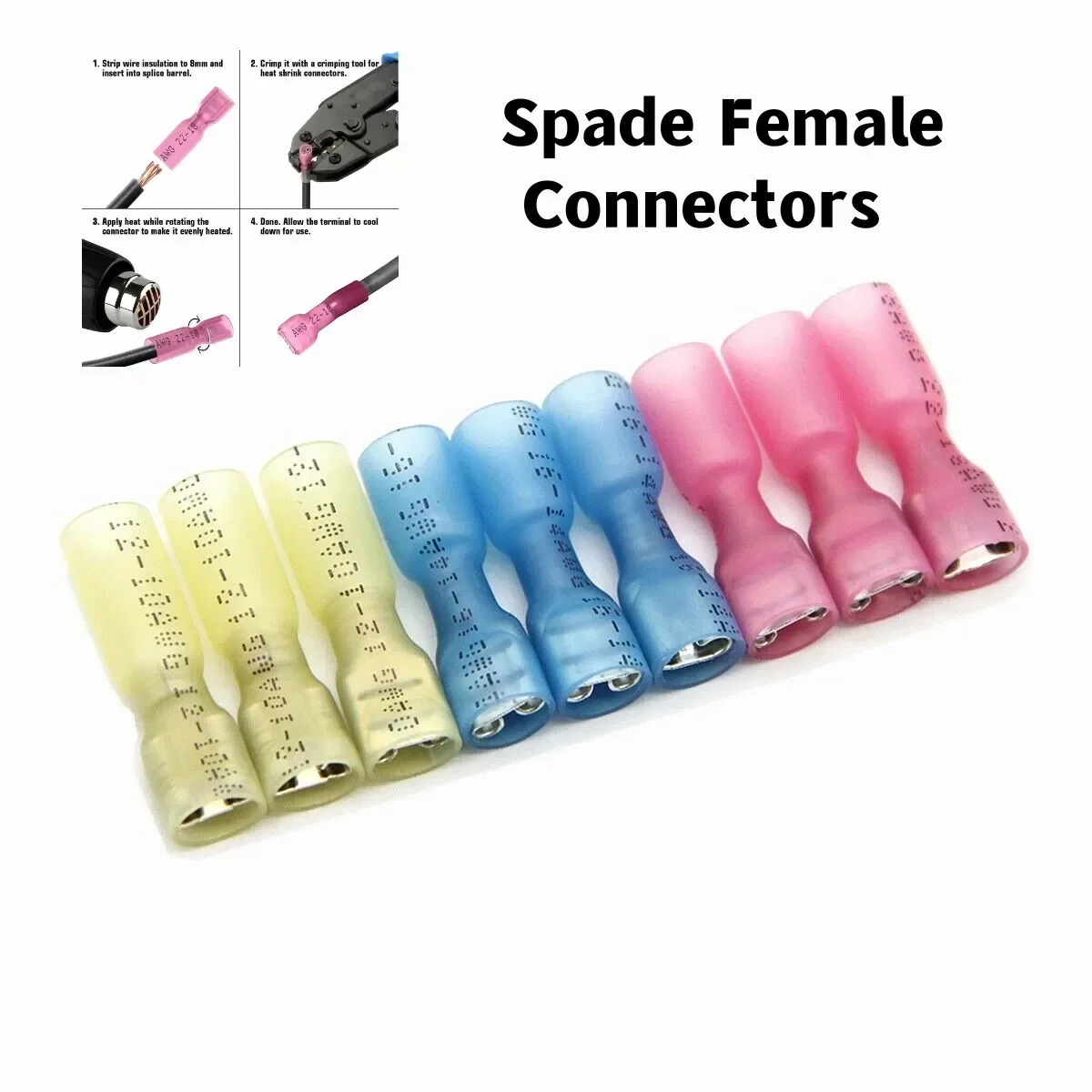 25/100PCS Heat Shrink Spade Female Wire Connectors Splice Insulated Waterproof Crimp Terminal 22-10AWG
