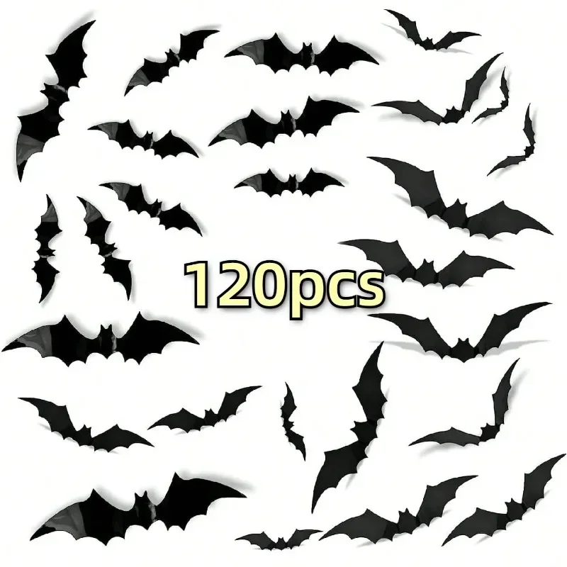 120pcs 3d Bat Halloween Decoration Wall Stickers Decoration Horror Front Porch Furniture Windows Yard Logo Outdoor Party Decor  Read more