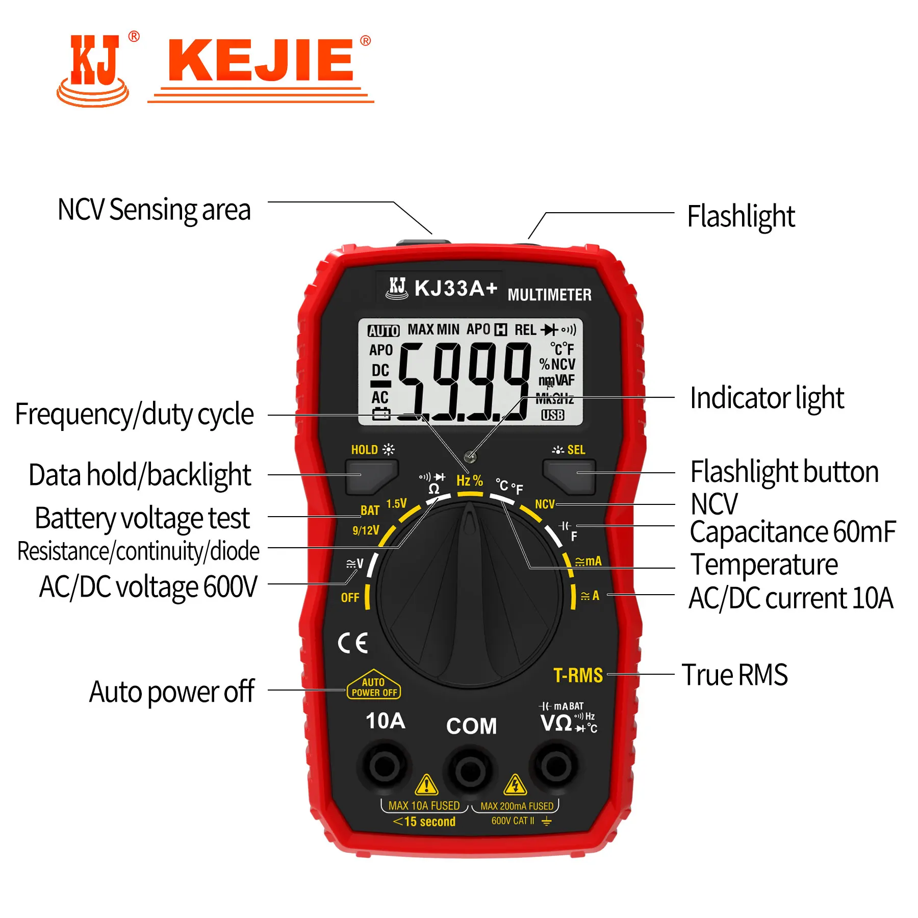 KJ33A+Automatic range AC/DC voltage AC/DC current battery measurement temperature measurement frequency continuity measurement