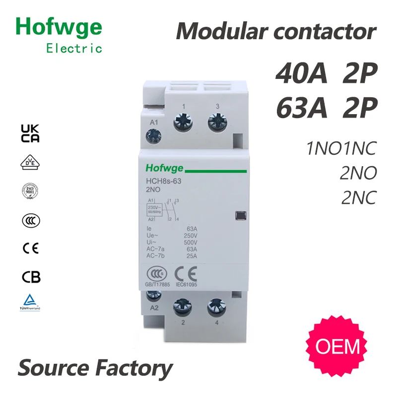 HCH8s-63 Household AC Contactor 2P 40A 63A 2NO 2NC 1NO1NC DC24V AC110V AC220V Automatic Contactor Din Rail Type 50Hz 60Hz