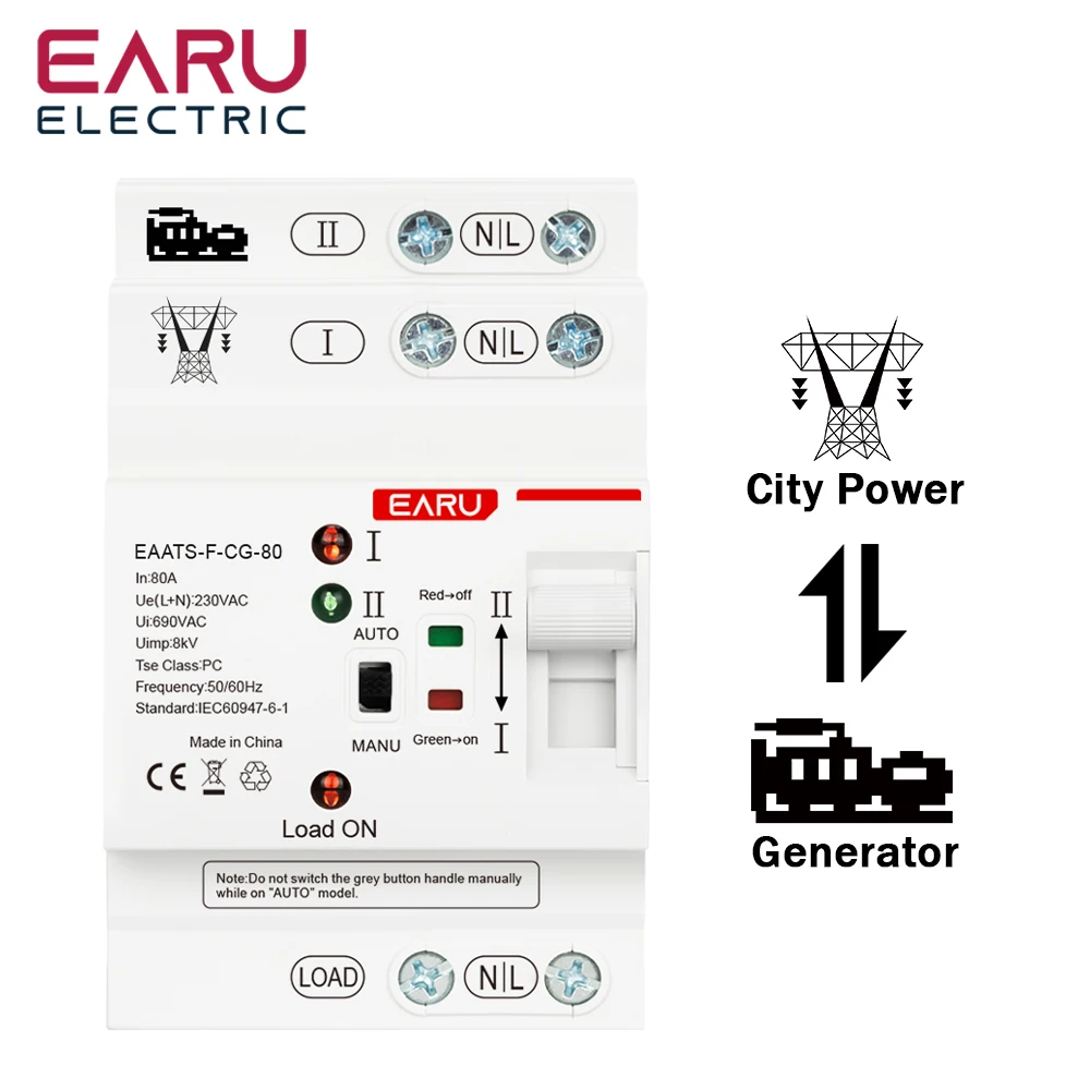 Din Rail Mini 2P 80A AC 220V 230V 50/60Hz ATS Dual Power Automatic Transfer Switch Electrical Selector Switch Uninterrupted Powe