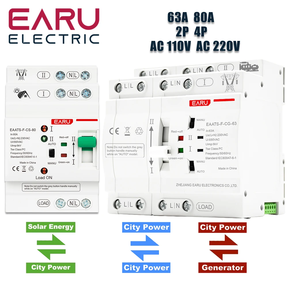 Din Rail 2P 4P 63A AC 110V AC 220V ATS Dual Power Automatic Transfer Switch Electrical Selector Switches Uninterrupted Power  Read more