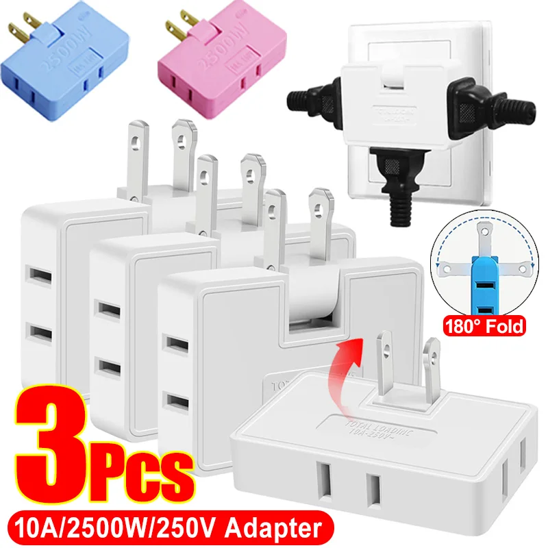 1-3Pcs 3 Way Flat Plug Adapter Power Wall Plug US Extension Plug Adapters Portable Foldable Extension Travel Converter Socket