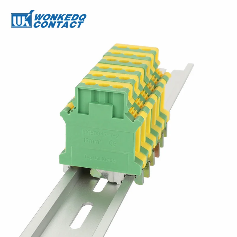 USLKG16N Ground Modular Din Rail Terminal Block, 16 mm² Universal Screw Earth Plug Wire Electrical Connector USLKG-16N
