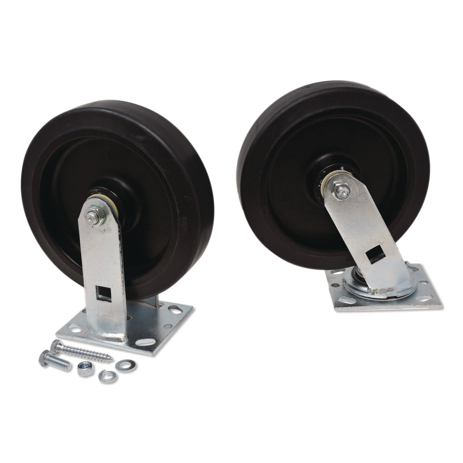 Rubbermaid Commercial Replacement Plate Casters, 4" x 4.5" Swivel/Rigid Mount Plate, 8" Wheel, Black, 4 /Set (SGSFG4436L80000)