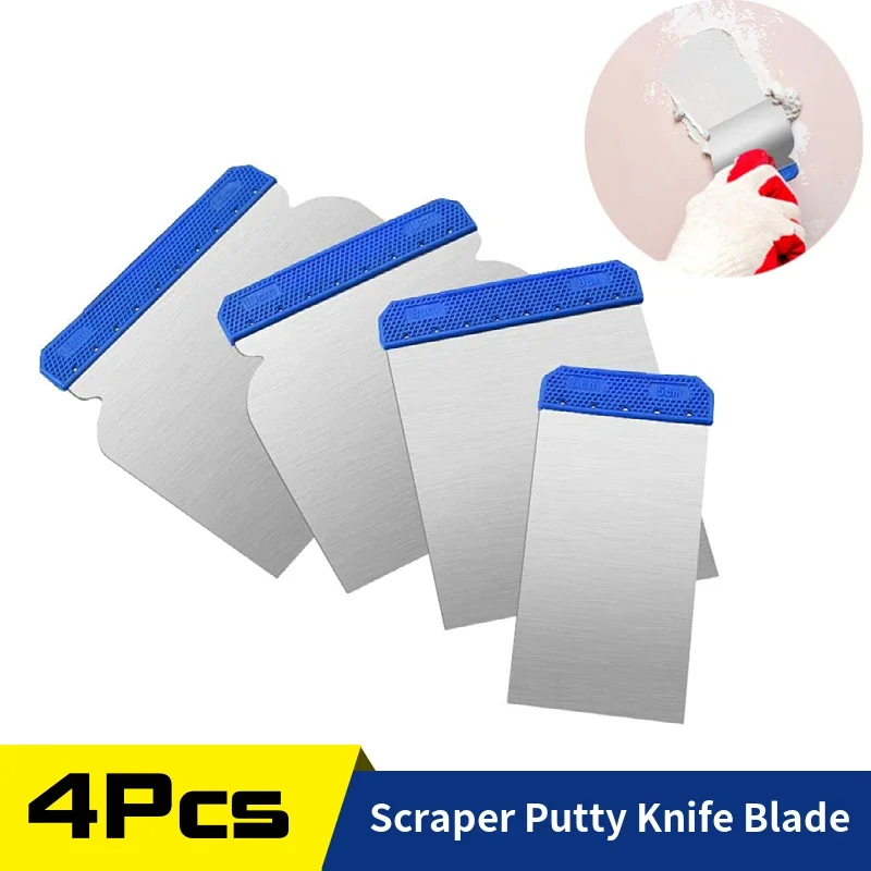 4pcs/lot Scraper Putty Knife Blade Painting Tools Hand Plastering Cleaning Blade Shovel for Wallpaper/Decals/Drywall Finishing