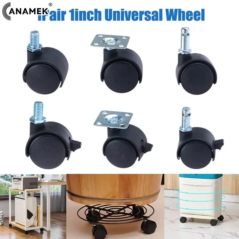 2pcs 1/1.5inch Furniture Caster Soft Rubber Universal Wheel Swivel Caster Roller Wheel For Platform Trolley Accessories Hardware