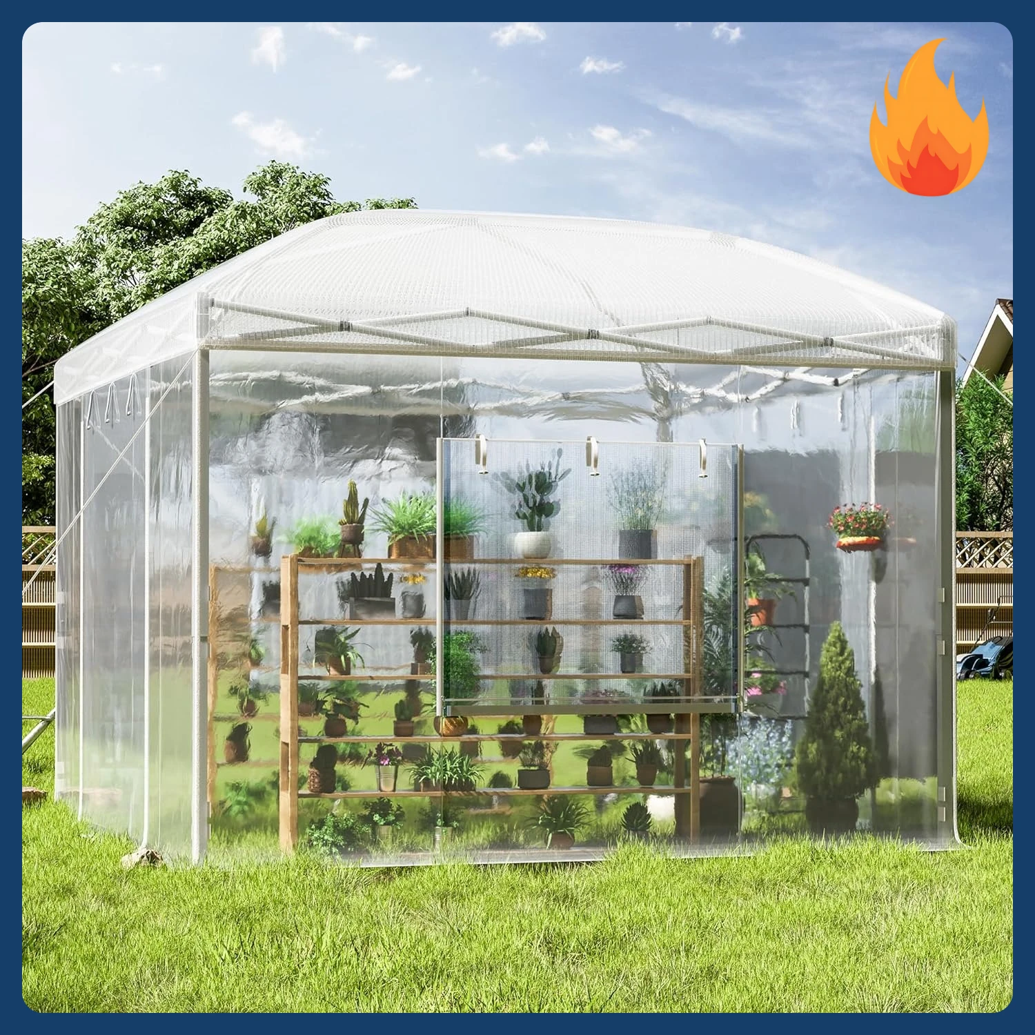 [New Arrival!]10×10×8.5 FT Outdoors Pop-up Greenhouses with Adjustable Reinforced Frame, Portable Walk in Greenhouse with 2 Roll