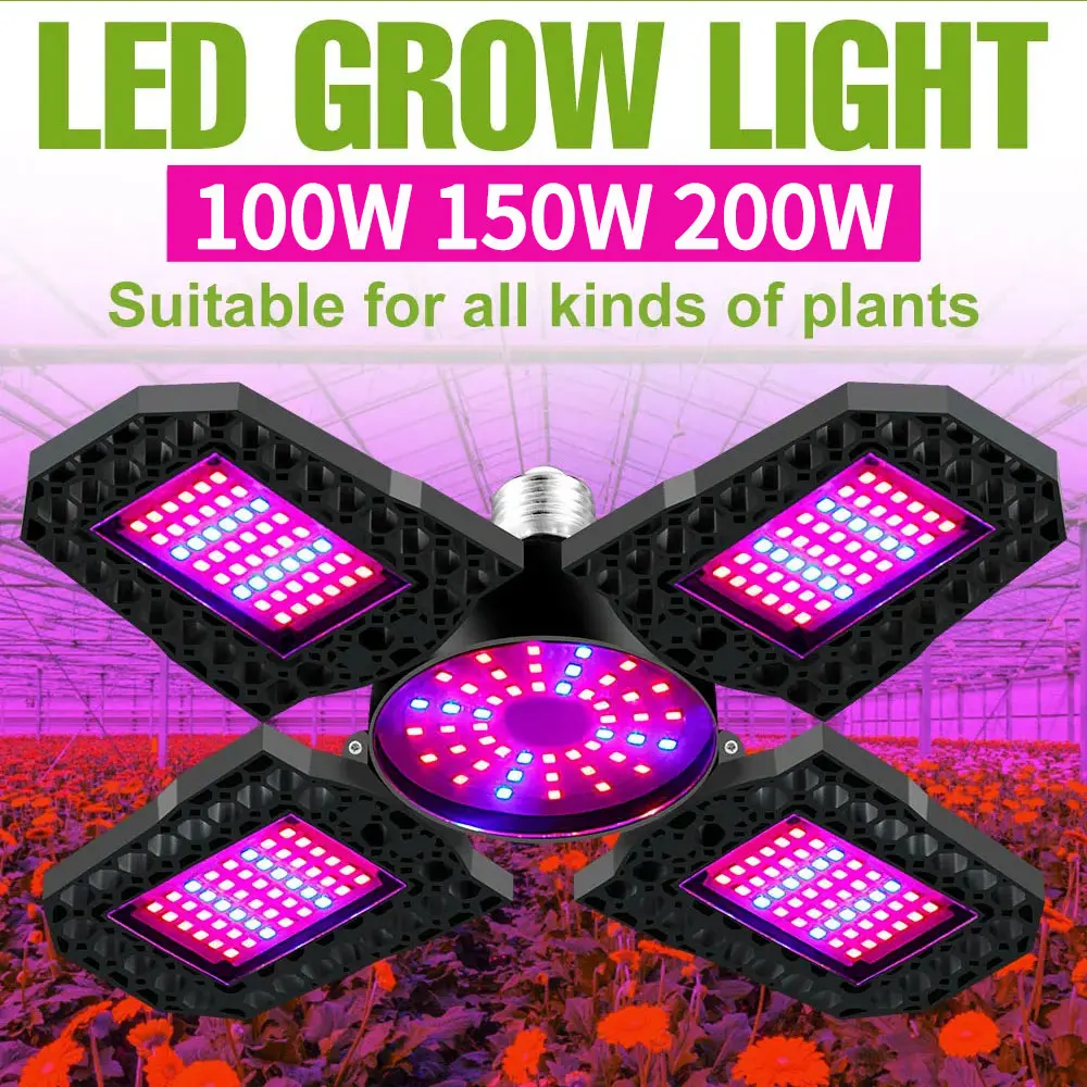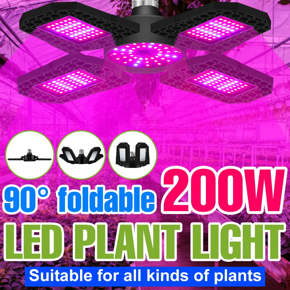 200W LED Plant Grow Lights E27/E26 Phyto Lamp Full Spectrum Foldable For Greenhouse Tent Flower Vegetable Hydroponic Cultivation