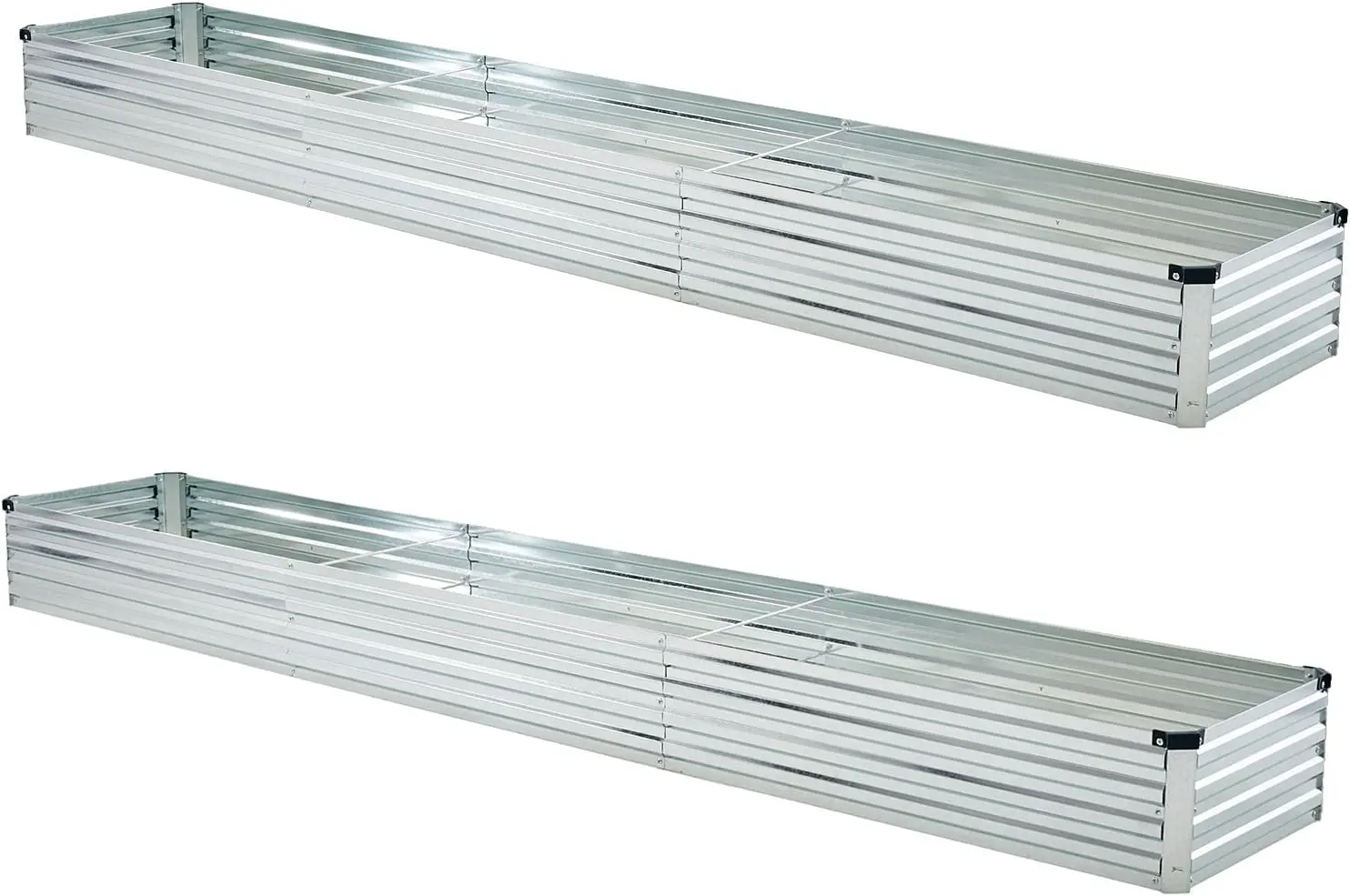 HOME 8x4x1ft(2 Pack) Galvanized Raised Garden Bed, Outdoor Planter Box Metal Patio Kit Planting Bed for Flowers Herb, Silver