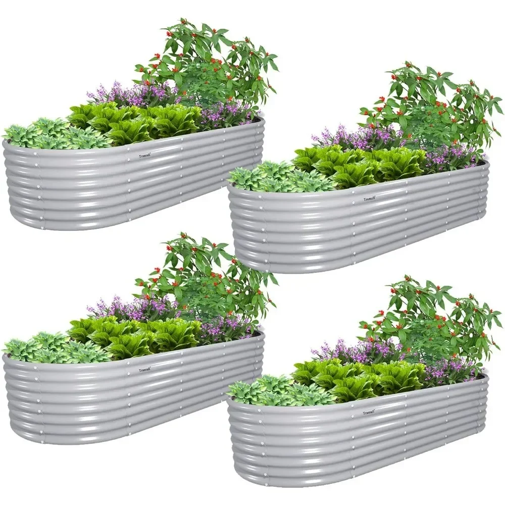 4 Pack 8x3x2FT Galvanized Raised Garden Bed Kit Oval Metal Ground Planter Box Outdoor Bottomless Planter Raised Beds for Vegetab