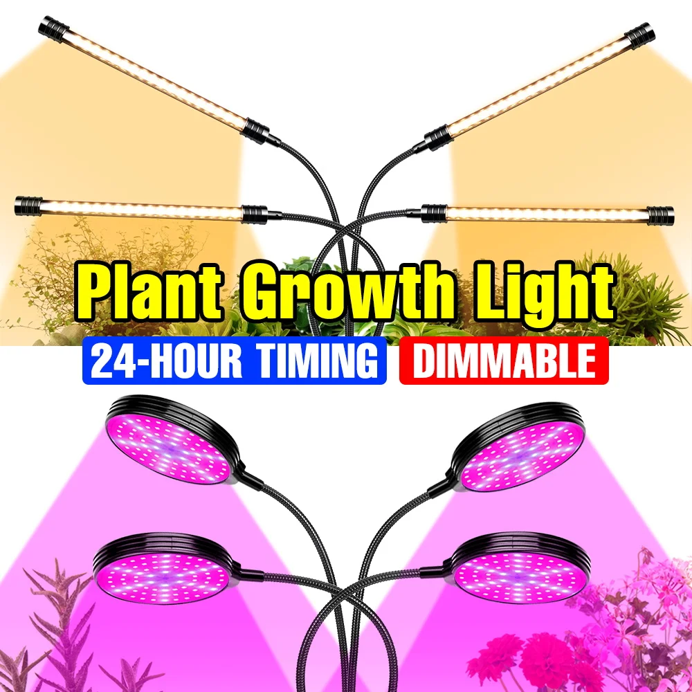 USB 5V LED Grow Light Full Spectrum Plant Hydroponics Cultivation Lamp 1/2/3/4 Heads Waterproof Dimmable With Timing Auto On/Off
