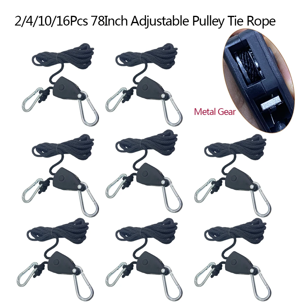 2/4/6/10/16Pcs Rope Pulley 1/8 Lift Metal Pulley 78Inch Adjustable Lanyard Hanging for Tent Fan Grow Plant Lamp Boat Awning