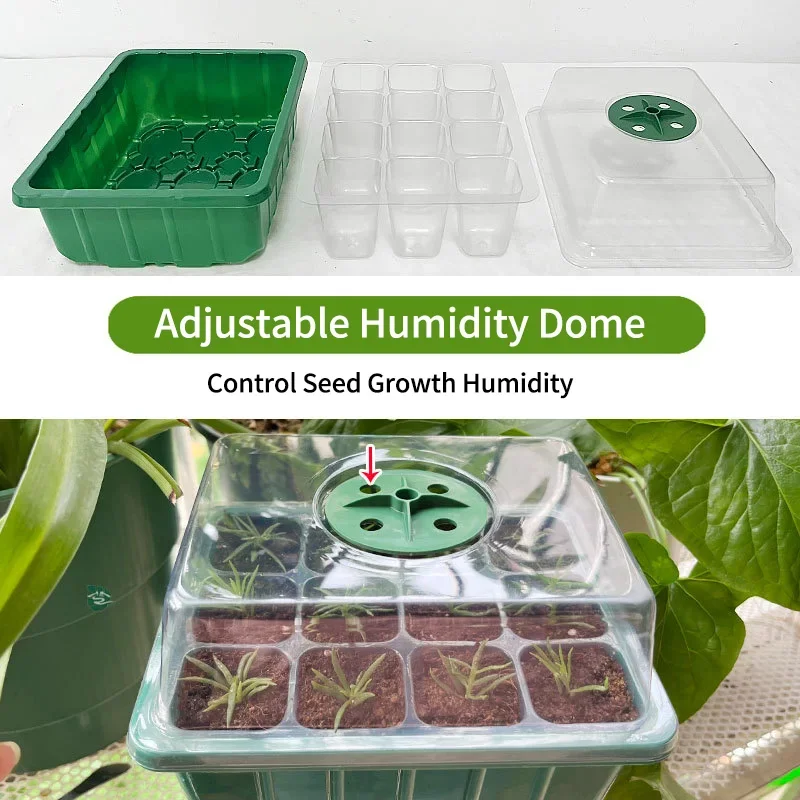 Seed Starter Tray with Plant Light, Elevated Seedling Starter Trays Kits with Adjustable Humidity Domes and Clear Cell Tray