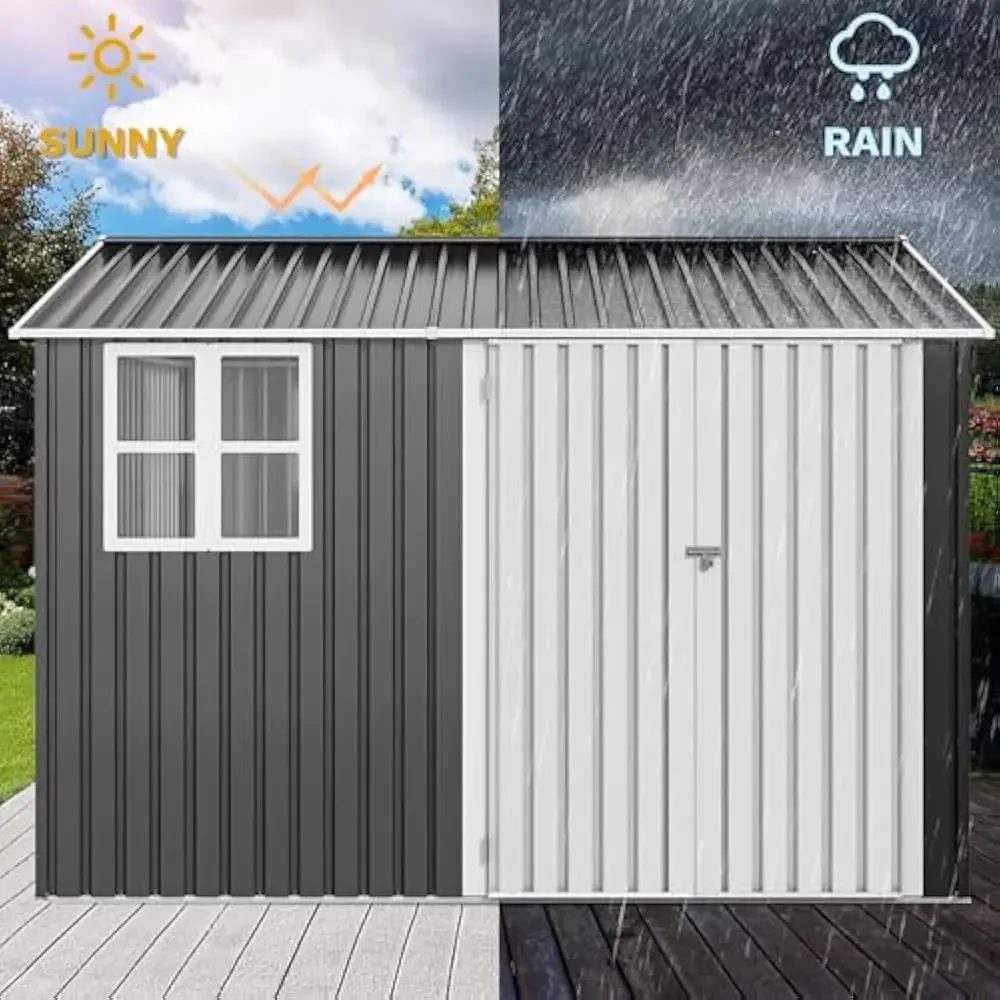 10x8 FT Sheds & Outdoor Storage, Metal Garden Shed with Window, Waterproof Cabinet Foldable House W/Lockable Doors and Roofs  Read more