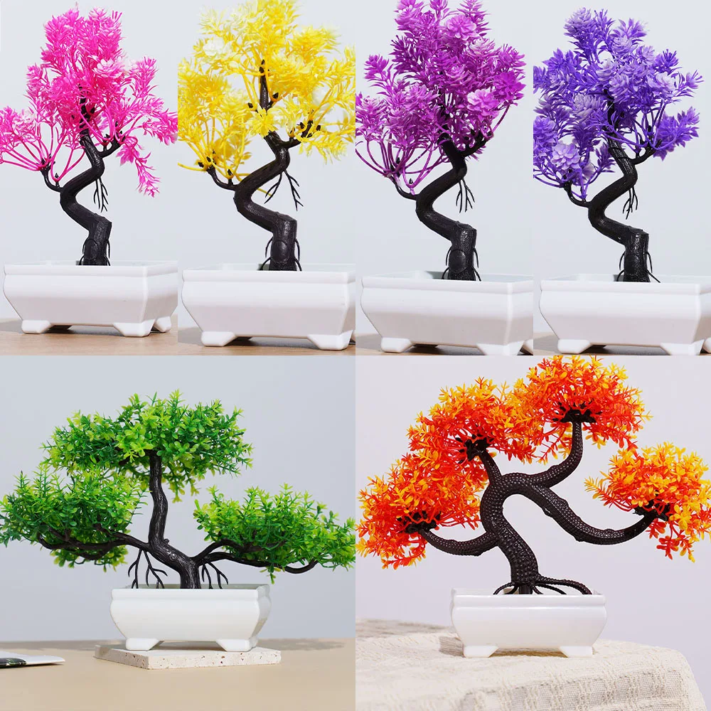 Artificial Plastic Plants Bonsai Small Tree Pot Potted Flower Garden Fake Plant Arrangement Room Ornaments Home Table Decoration