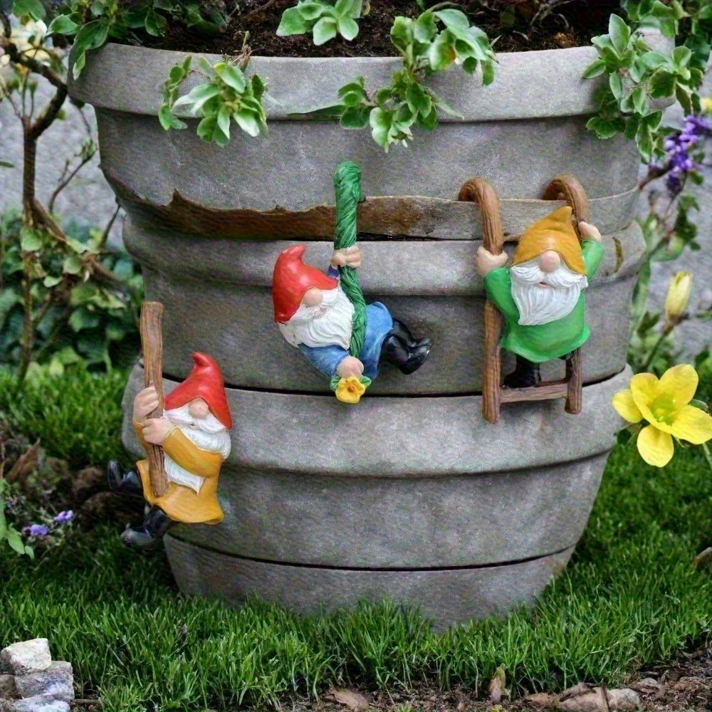 3PCS resin garden gnomes climbing ladder hanging decor for flower pots balcony wall ornament outdoor yard decoration  Read more