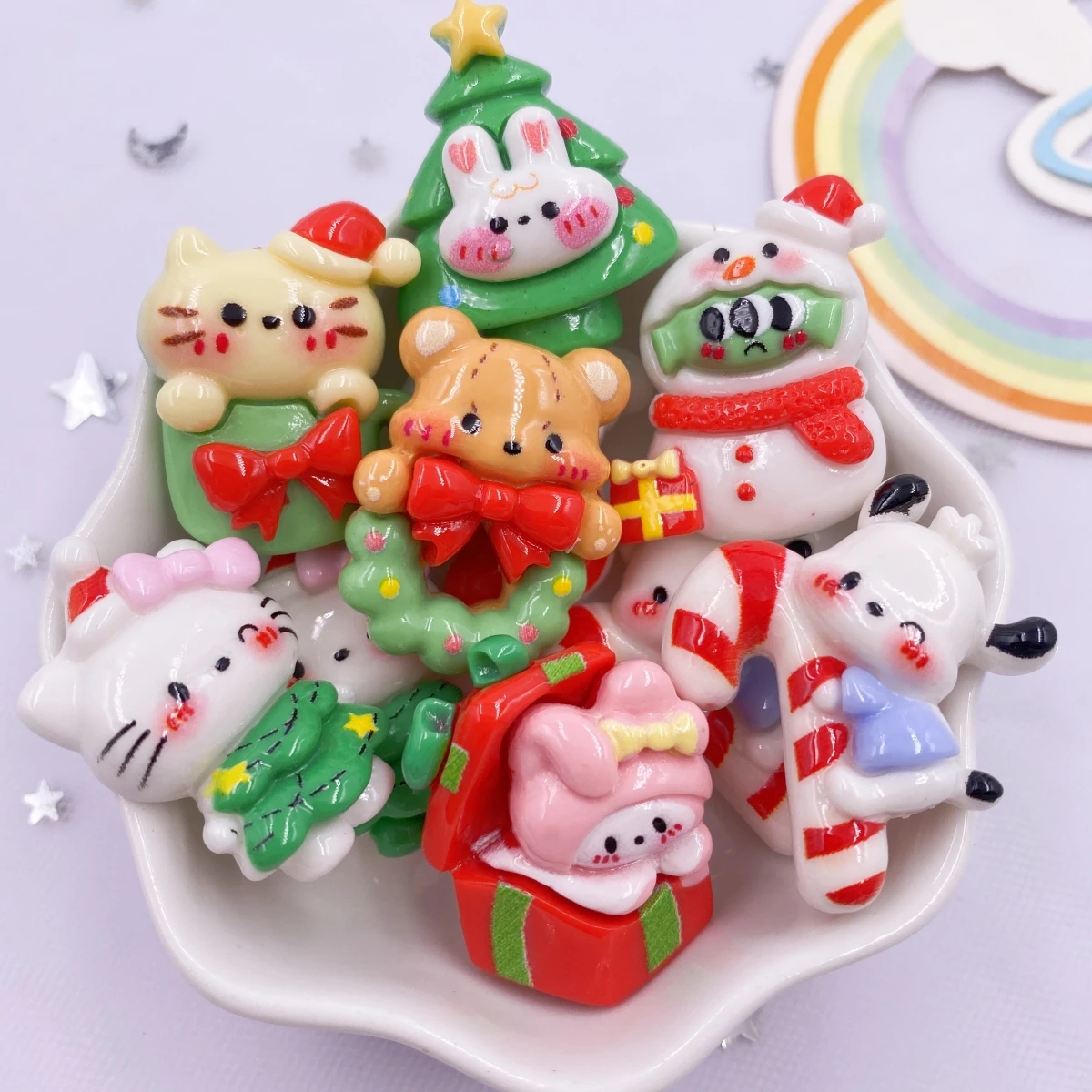 12PCS Resin Kawaii Colorful Mini Santa Trees Elk Snowman Bells Flatback Cartoon Christmas Figurine Scrapbook DIY Decor Crafts