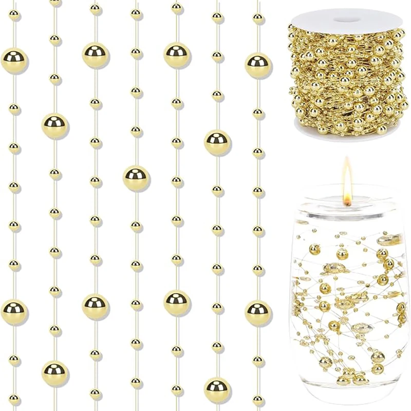 10M Artificial Plastic Pearl Flower Ring Chain Christmas Tree Beaded for Home Decoration Wedding Christmas DIY Party Decor