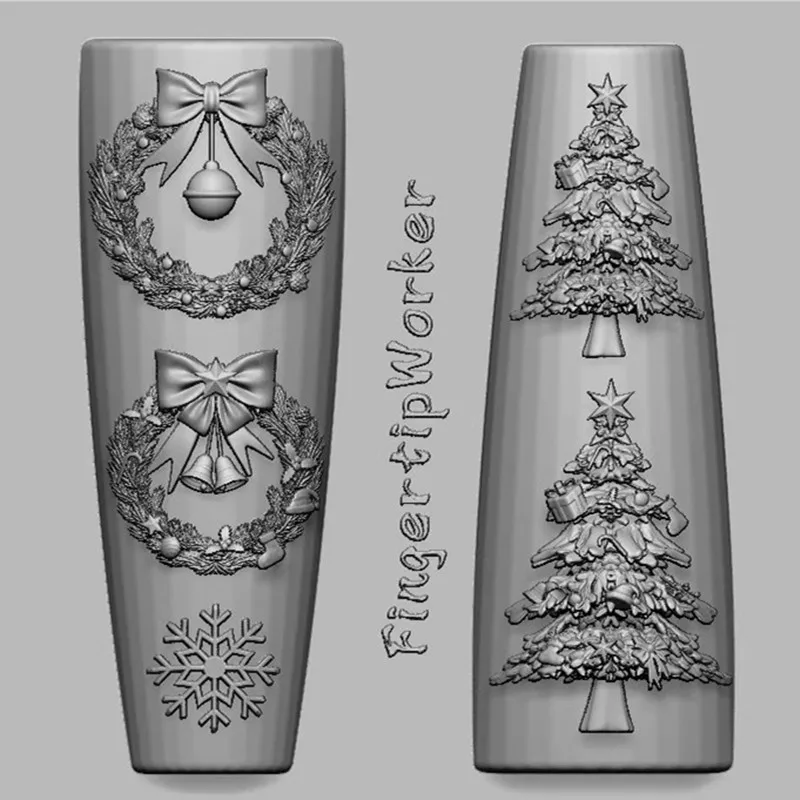 Nail Christmas Tree Garland Mold 3d Carving Curved Silicone Template
