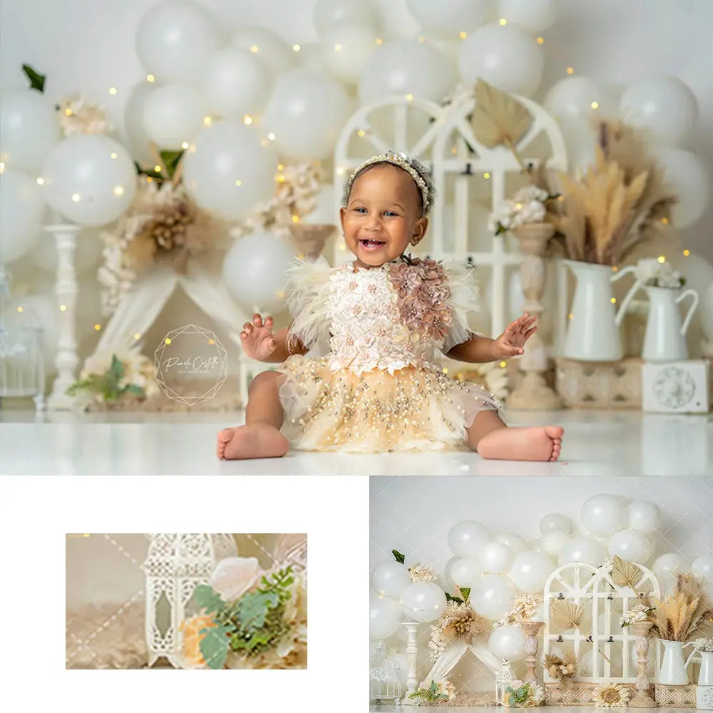 Boho Style Backdrop Balloon Garland Kids Baby Cake Smash Photography Props Child Girls Adult Birthday Studio Backgrounds