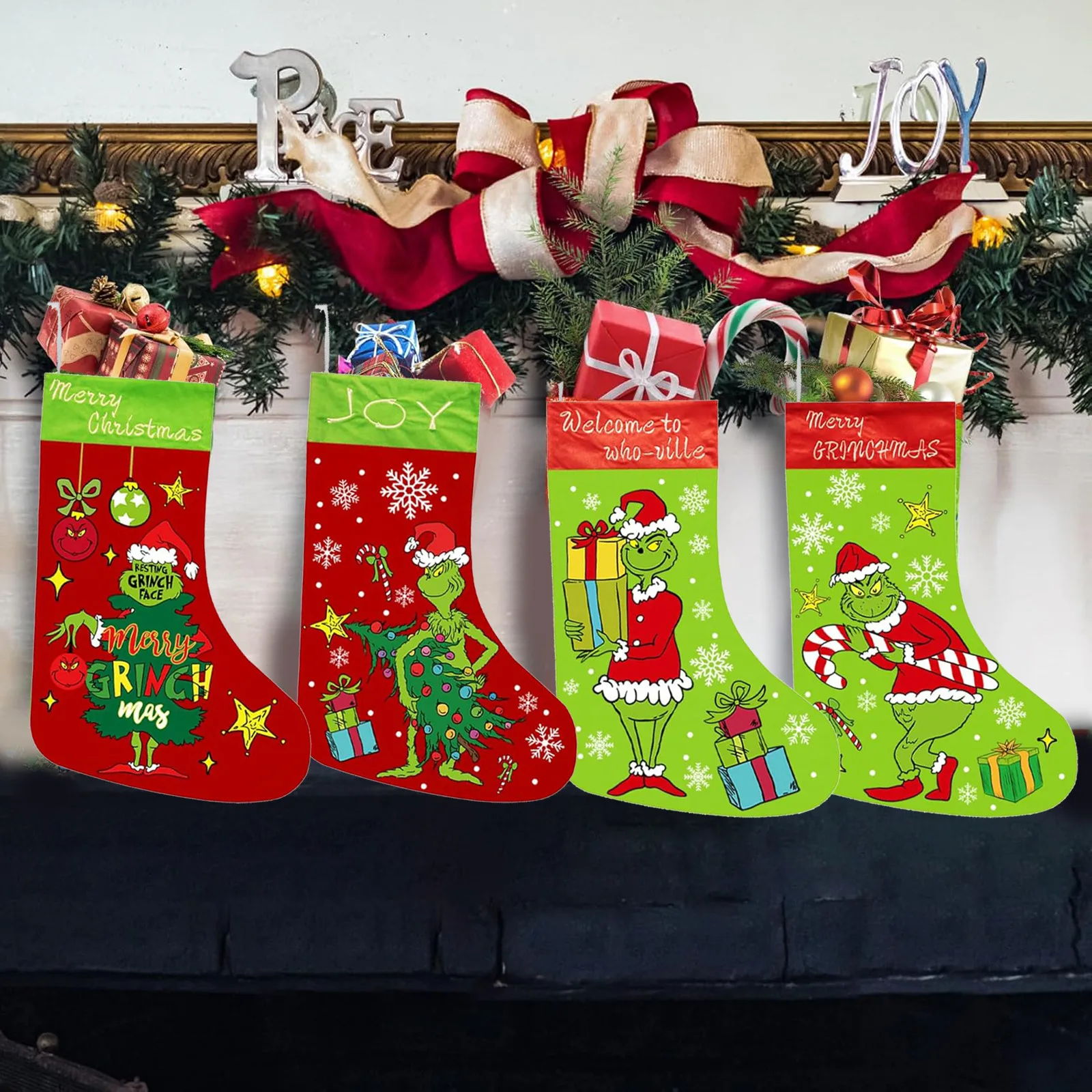 Letter Christmas Stockings, Green Elf Stockings, Snack Bags, Candy Bags, Holiday Fireplace Gifts, Christmas Tree Decorations