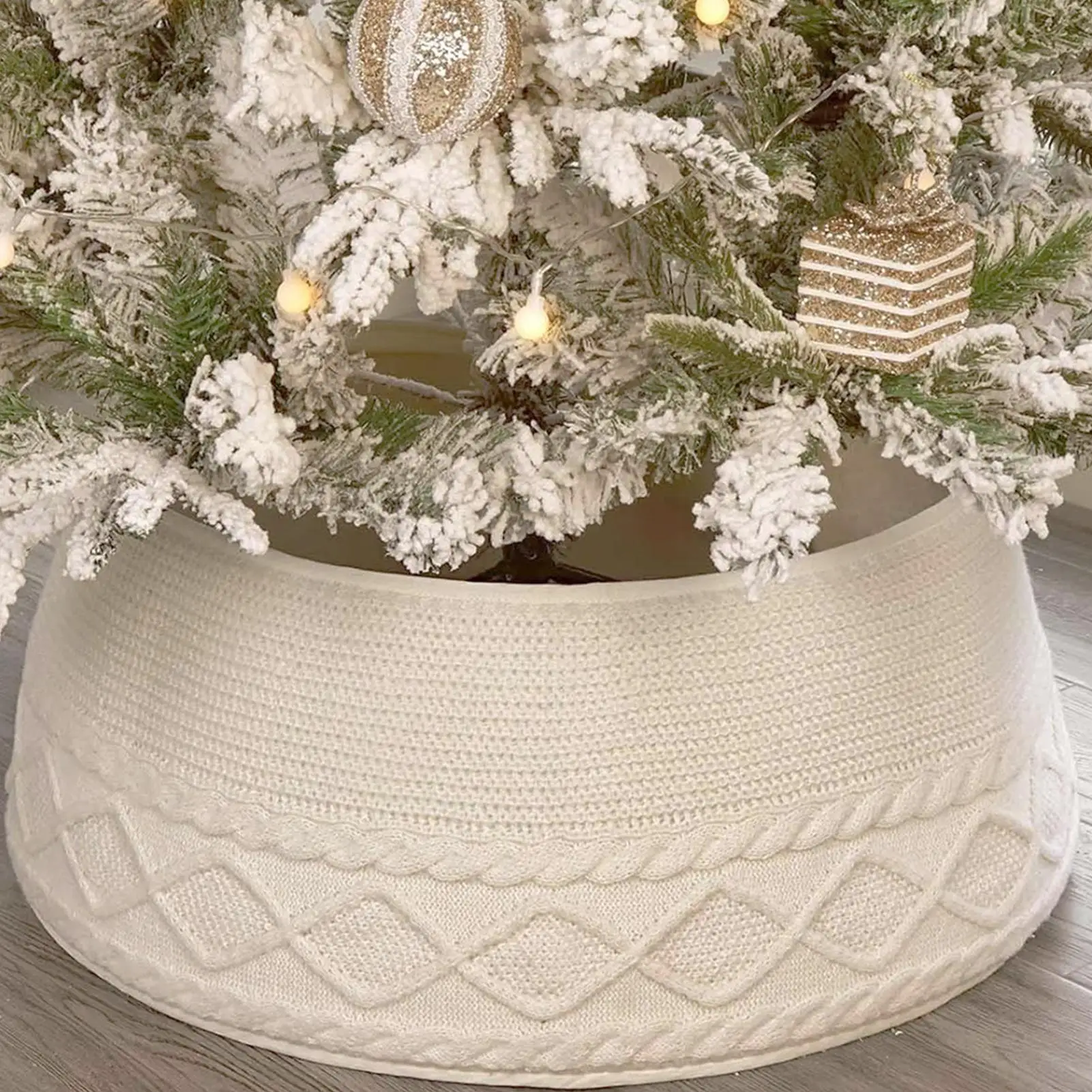 Knitted Christmas Tree Collar Cream White Rustic Farmhouse Tree Skirt Alternative Stand Base Cover for Artificial Trees Decor