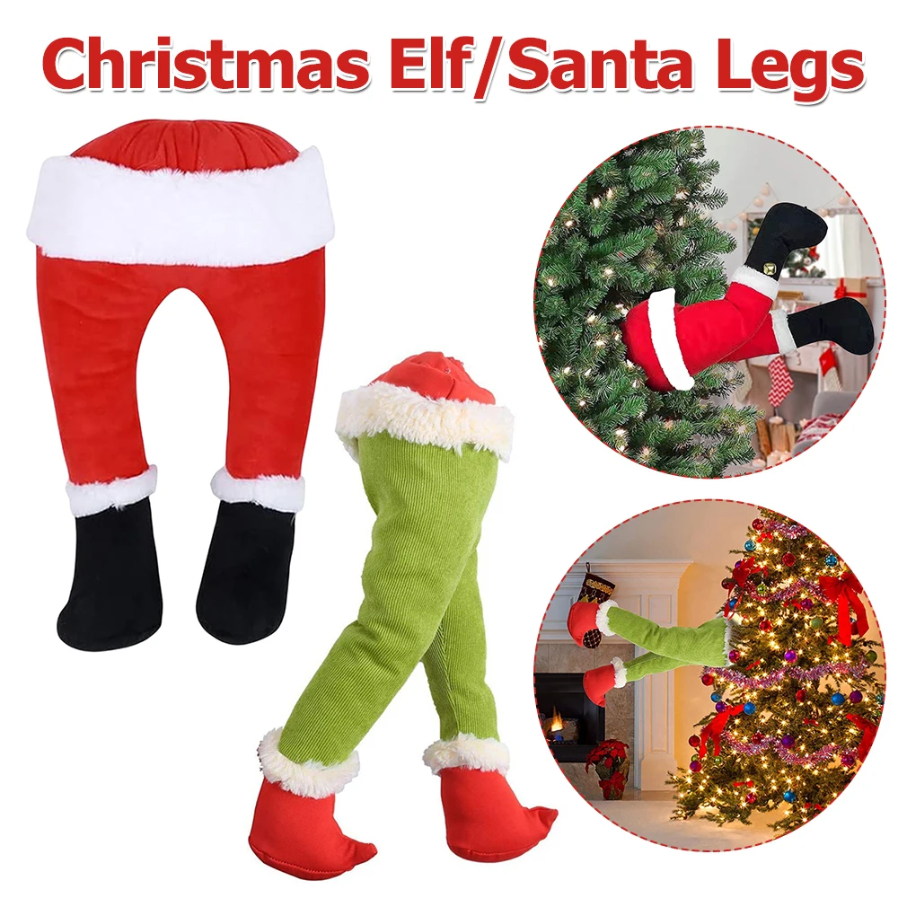 Santa/Christmas Elf Legs Stuffed Legs Stuck Tree Topper Decoration Christmas Tree Topper Xmas Holiday Indoor Outdoor Decor