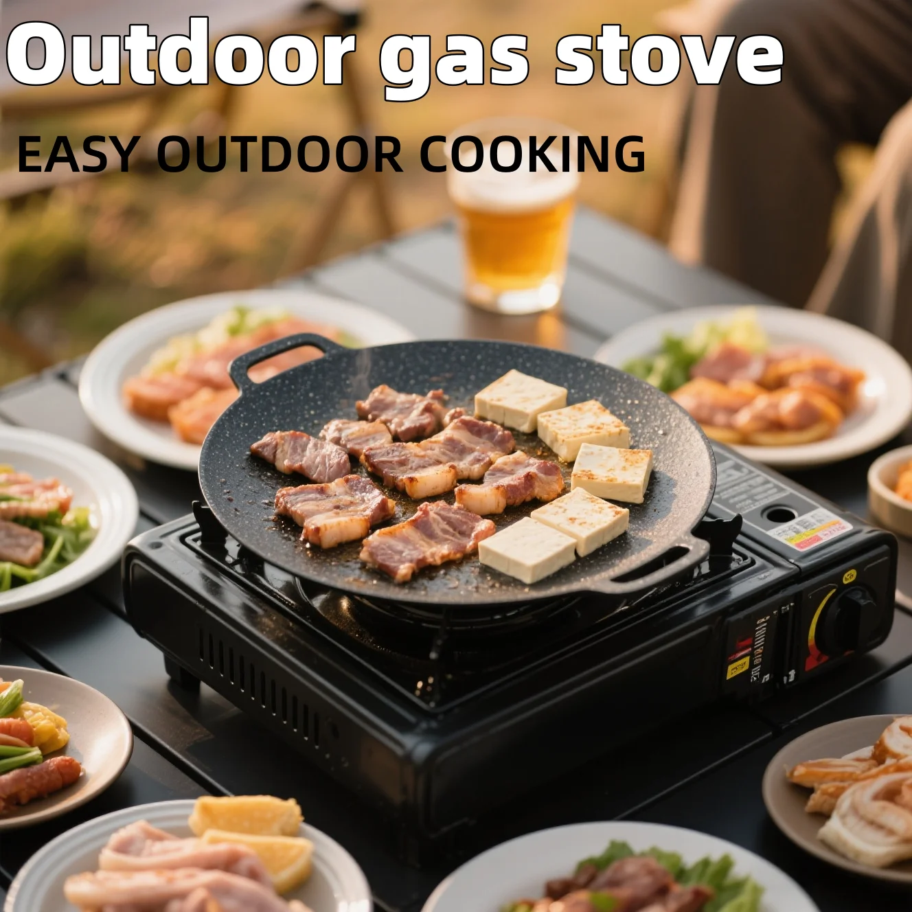 Portable outdoor gas stove, suitable for camping, barbecue cooking and household use. Lightweight and sturdy gas cooking utensils