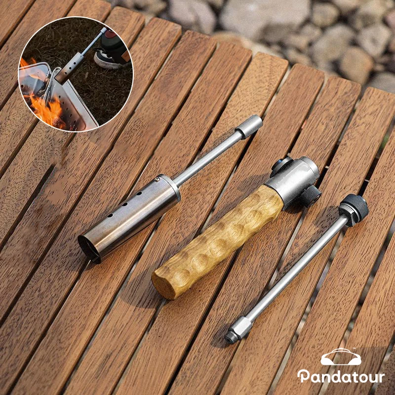 Pandatour Outdoor Portable Wooden Handle Burner Picnic BBQ Gas Tank Spray Gun Removable Stove Toolkit Camping Long Flame