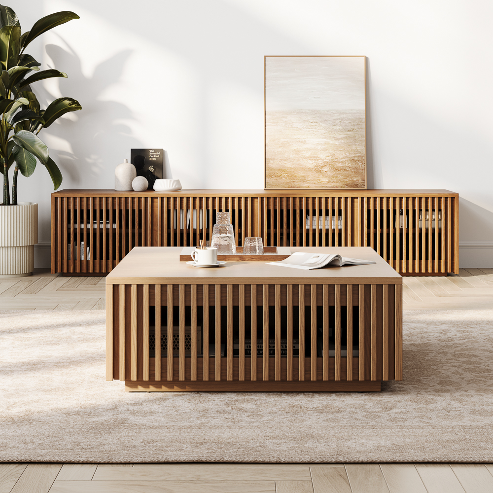 [High Quality Material]The coffee table is made of walnut color medium fiberboard, which has the beauty and texture of solid wood, as well as the durability and stability of medium fiberboard.[Medium Antique Style]The coffee table's fence element...