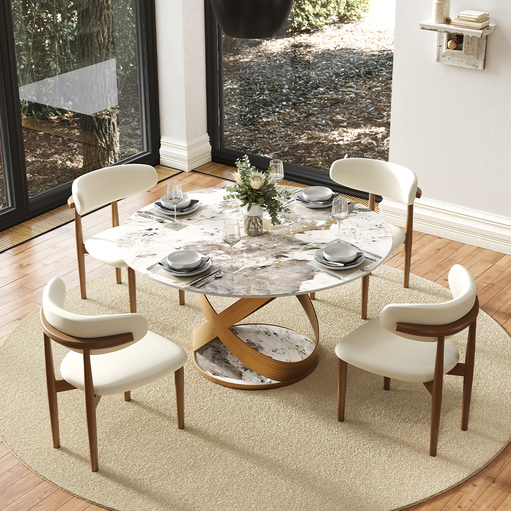 51" Modern Luxury Round Dining Table for 4, Glossy Pandora Sintered Stone Round Table, Bronze X Carbon Steel Base