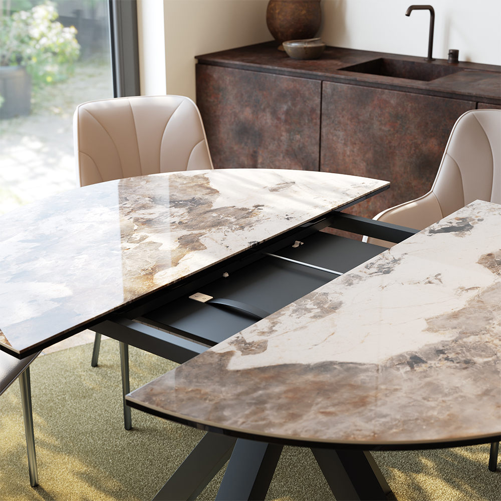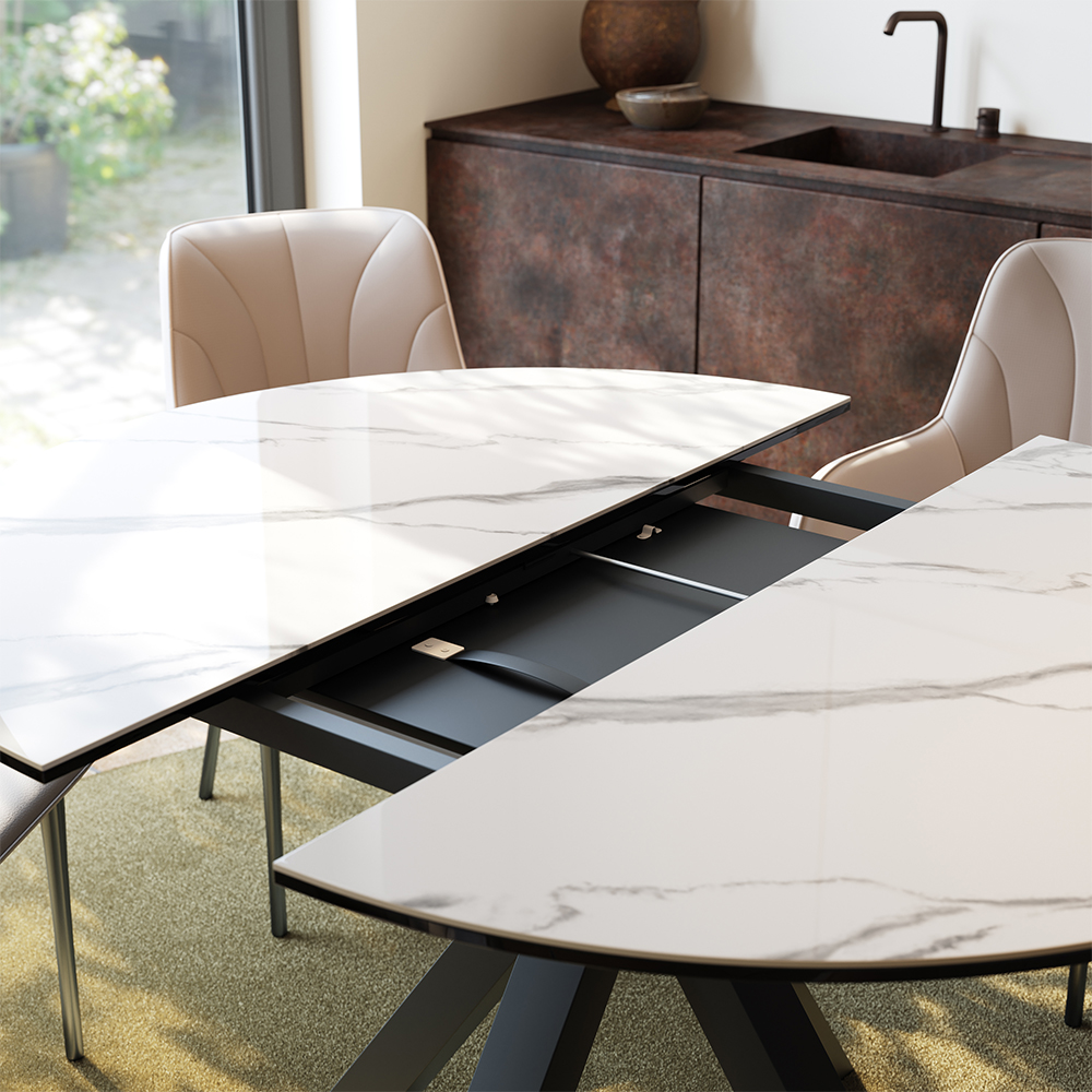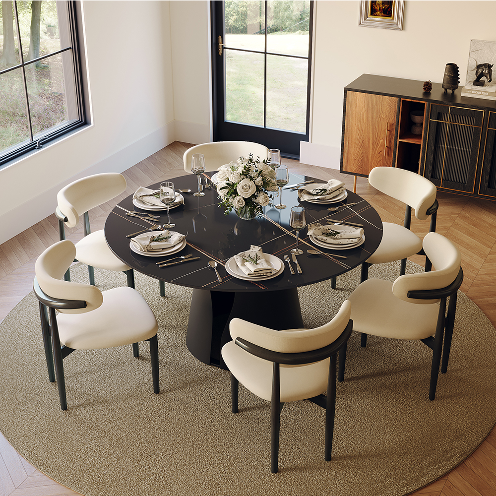 [12mm Sintered StoneTabletop]The glossy rock-slab tabletop not only exudes elegance but also boasts remarkable durability. It is highly resistant to high temperatures, wear and tear, and is effortlessly easy to clean with a simple...