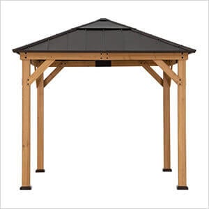 Sunjoy Group 9 x 9 Wooden Hardtop Gazebo with Ceiling Hook (Brown Roof)