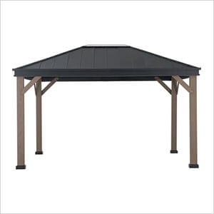 This rugged 10 x 12 gazebo made of aluminum and steel, has a clean architectural design that fits well into any backyard setting.