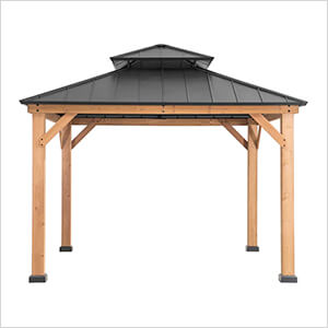This 11x11 ft. hardtop gazebo is constructed of durable black steel 2-tier roof and premium cedar wood frame, which is designed to provide shade from the heat and keep the water out.