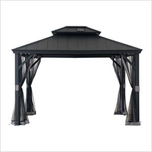 Sunjoy Group 10 x 12 Aluminum Frame 2-Tier Steel Hardtop Solar Powered Gazebo