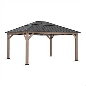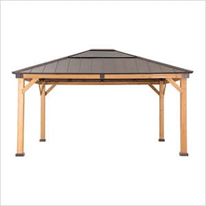 Sunjoy Group 13 x 15 Wooden Hardtop Gazebo with Ceiling Hook (Brown Roof)
