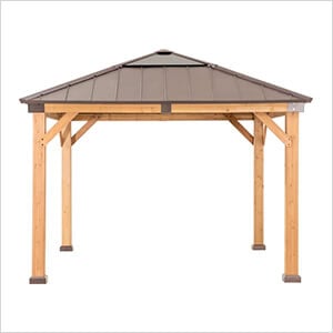 Sunjoy Group 11 x 11 Wooden Hardtop Gazebo with Ceiling Hook (Upgraded Brown Roof)