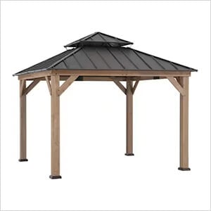 Sunjoy Group 11 x 11 Wooden 2-Tier Aluminum Hardtop Gazebo with Ceiling Hook